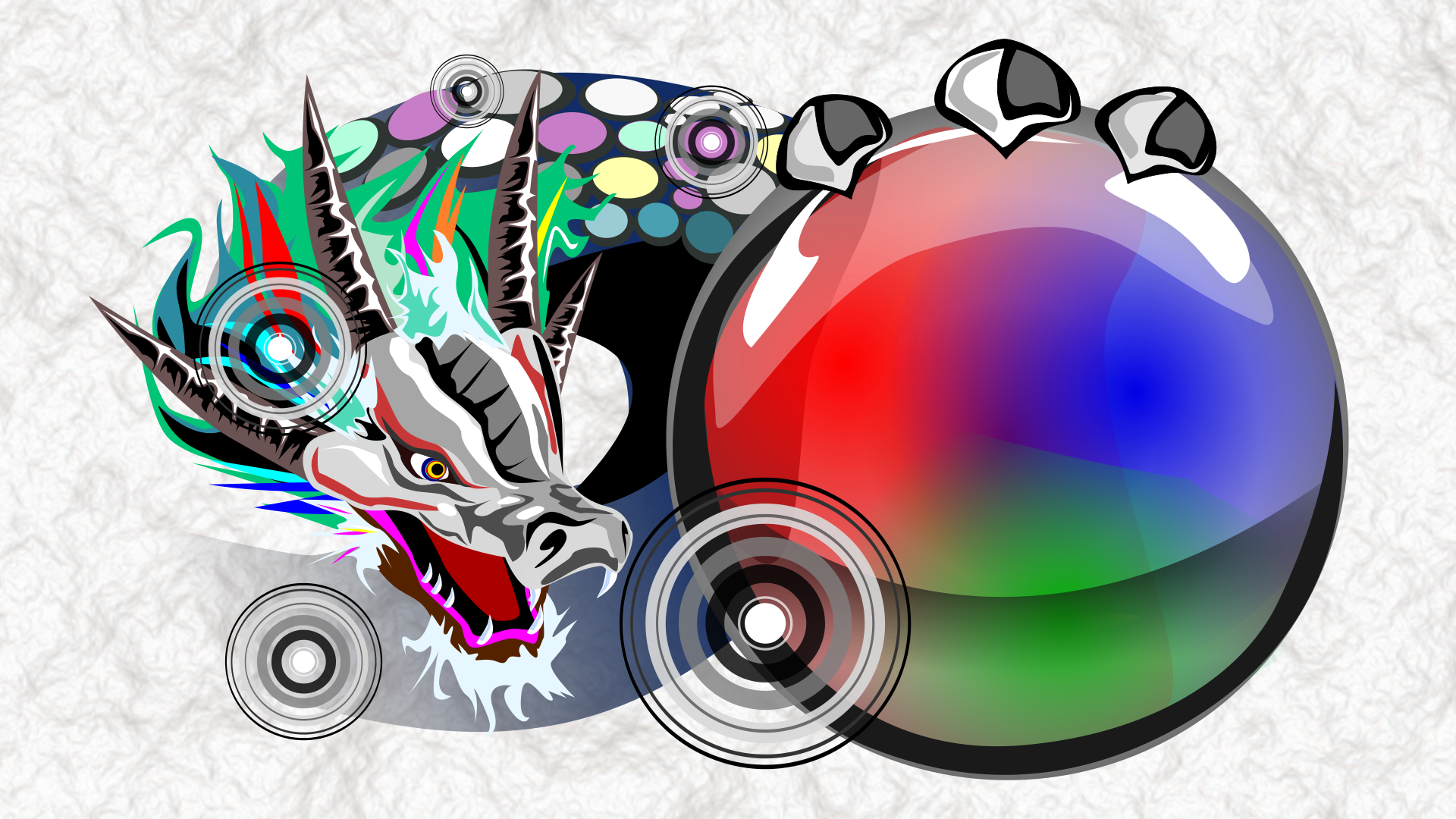光の三原色に彩られた龍